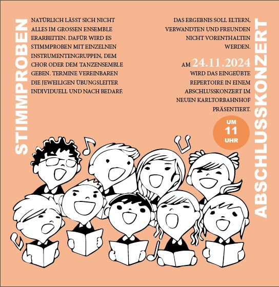 Neben den Projekttagen (28.09., 04.10., 19.10., 16.11., 22.11.) finden auch individuelle Stimmproben statt, bei denen jede Instrumentalstimme intensiv mit den Teilnehmenden geübt wird.