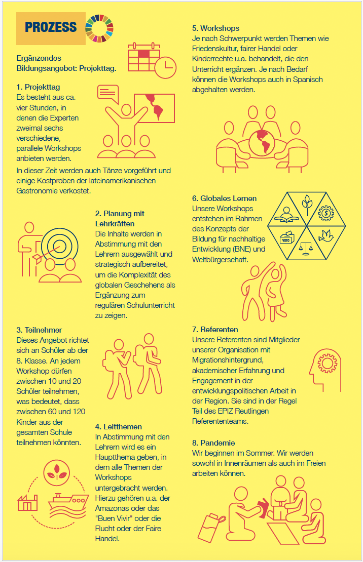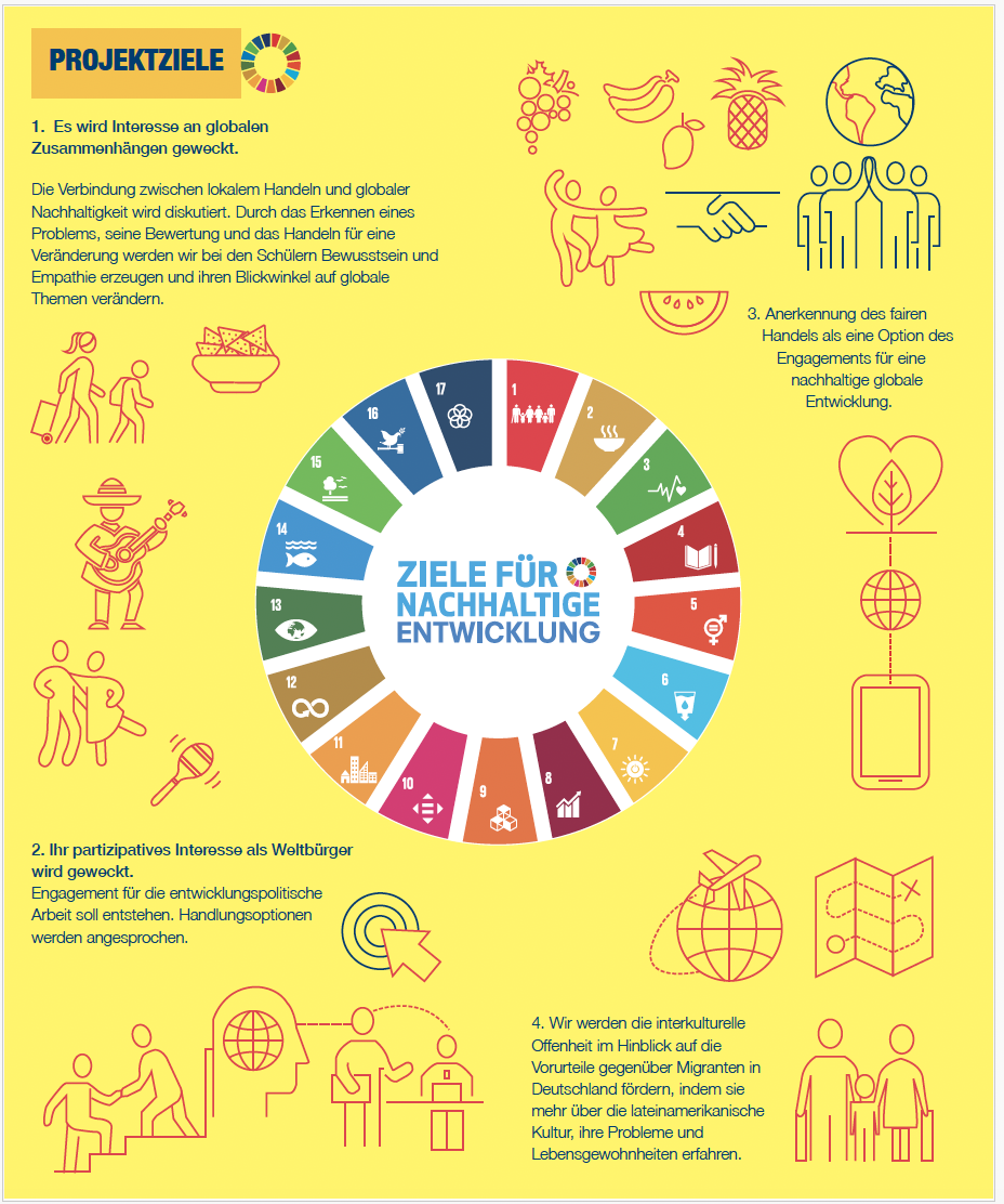 Beispiele sind Projekttage zu Themen wie Lateinamerika, Nachhaltigkeit, Fairtrade oder Klima.